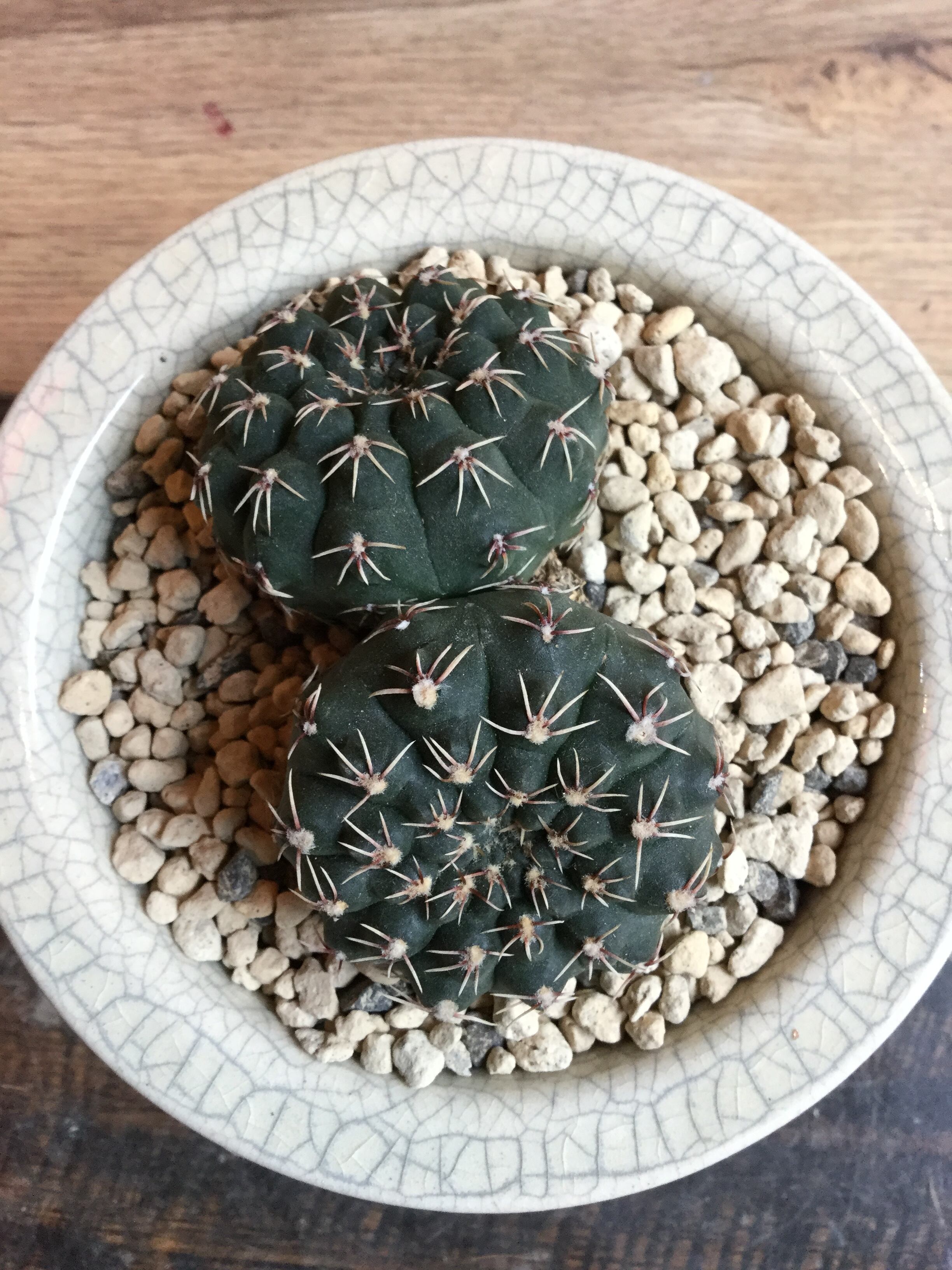 黒に近い濃い緑と白い棘のコントラストが美しいです。