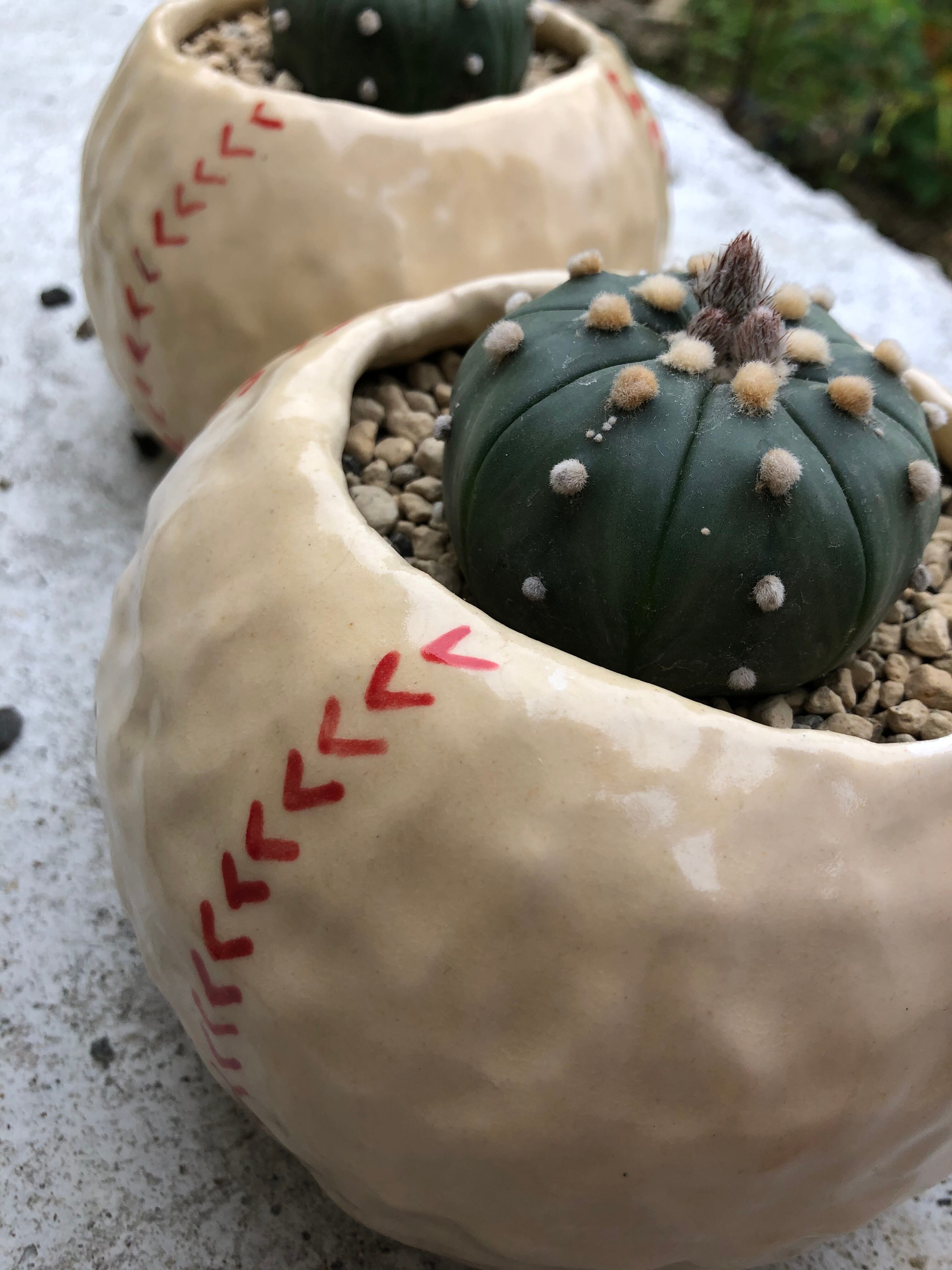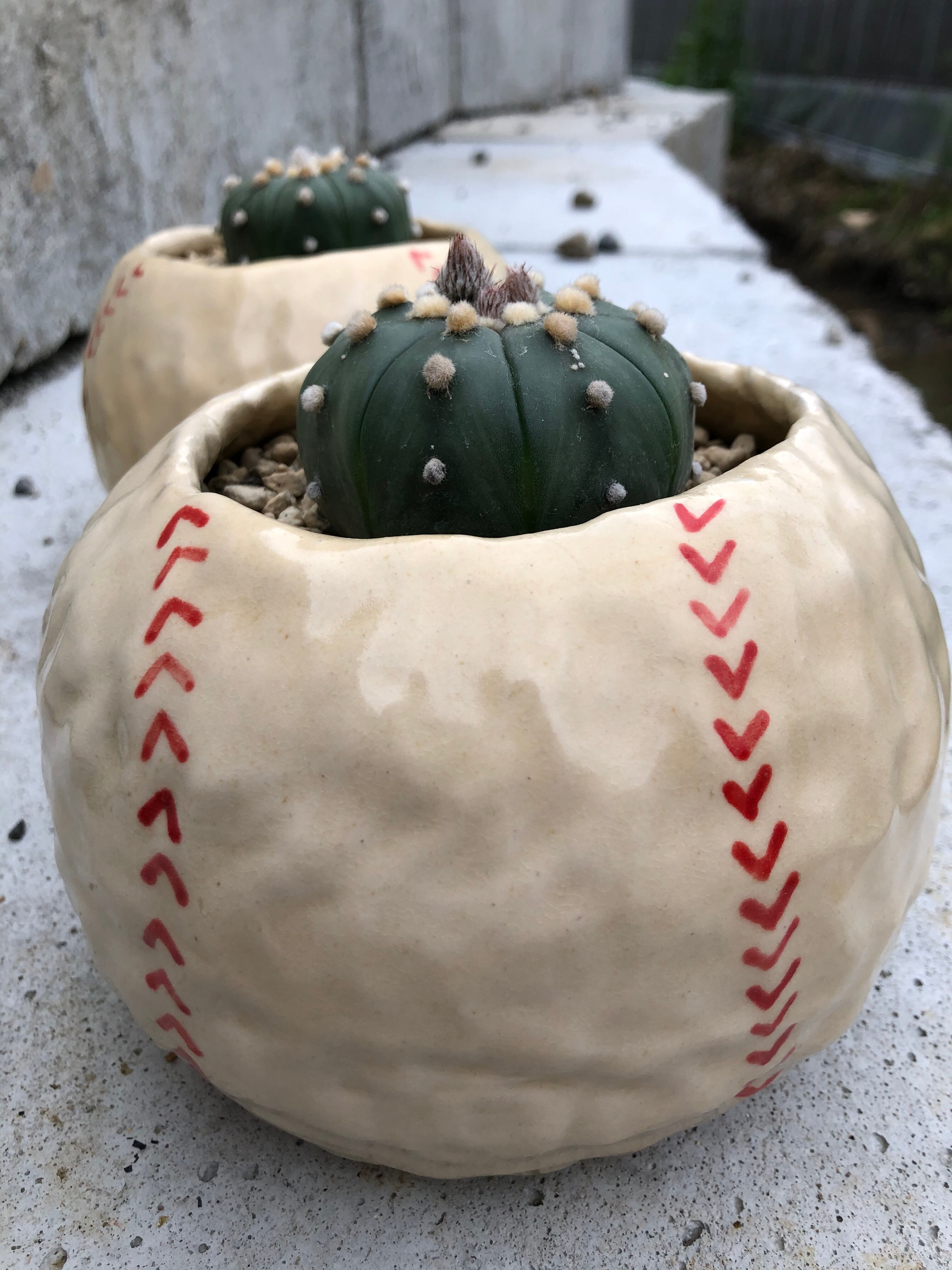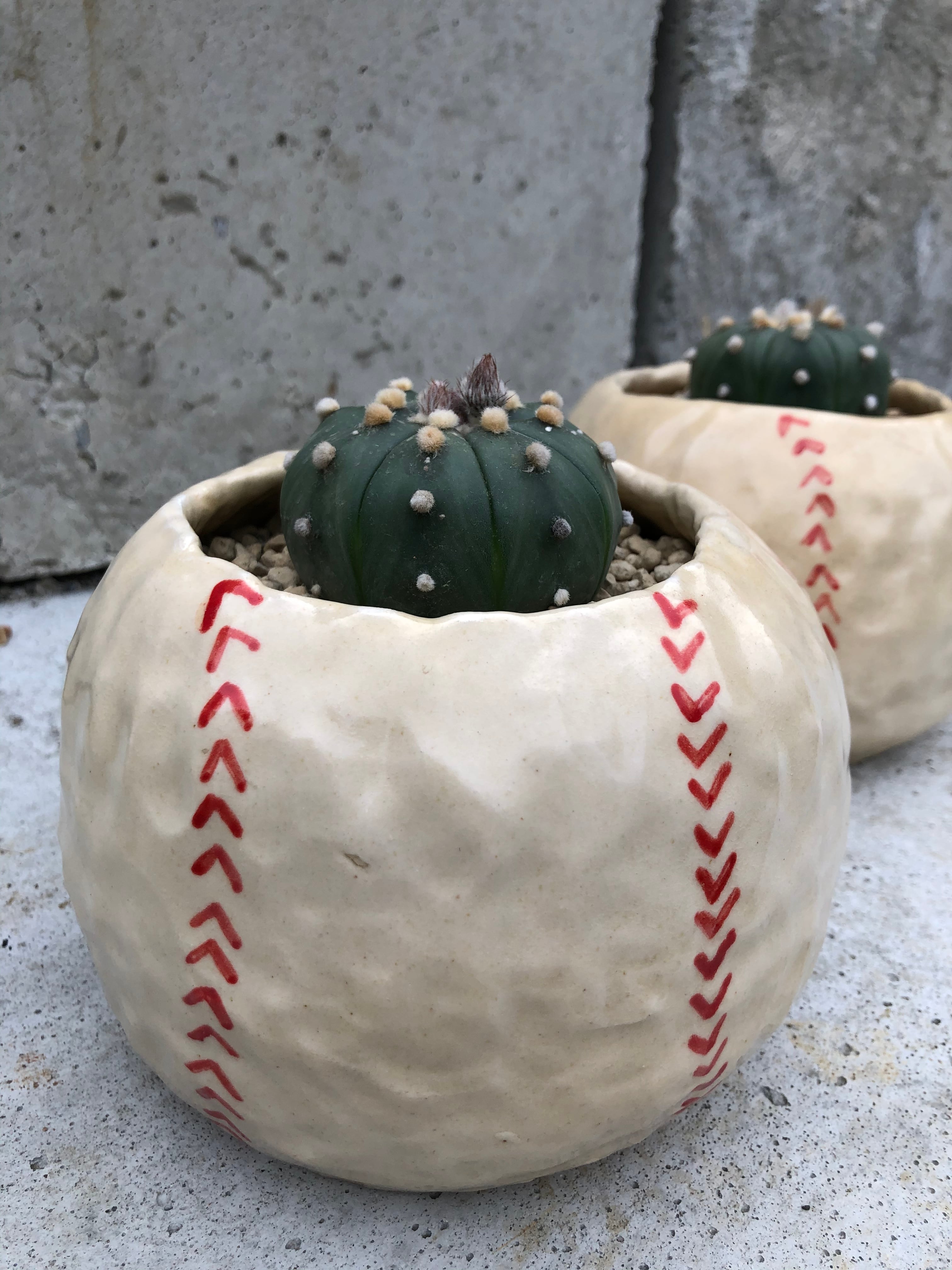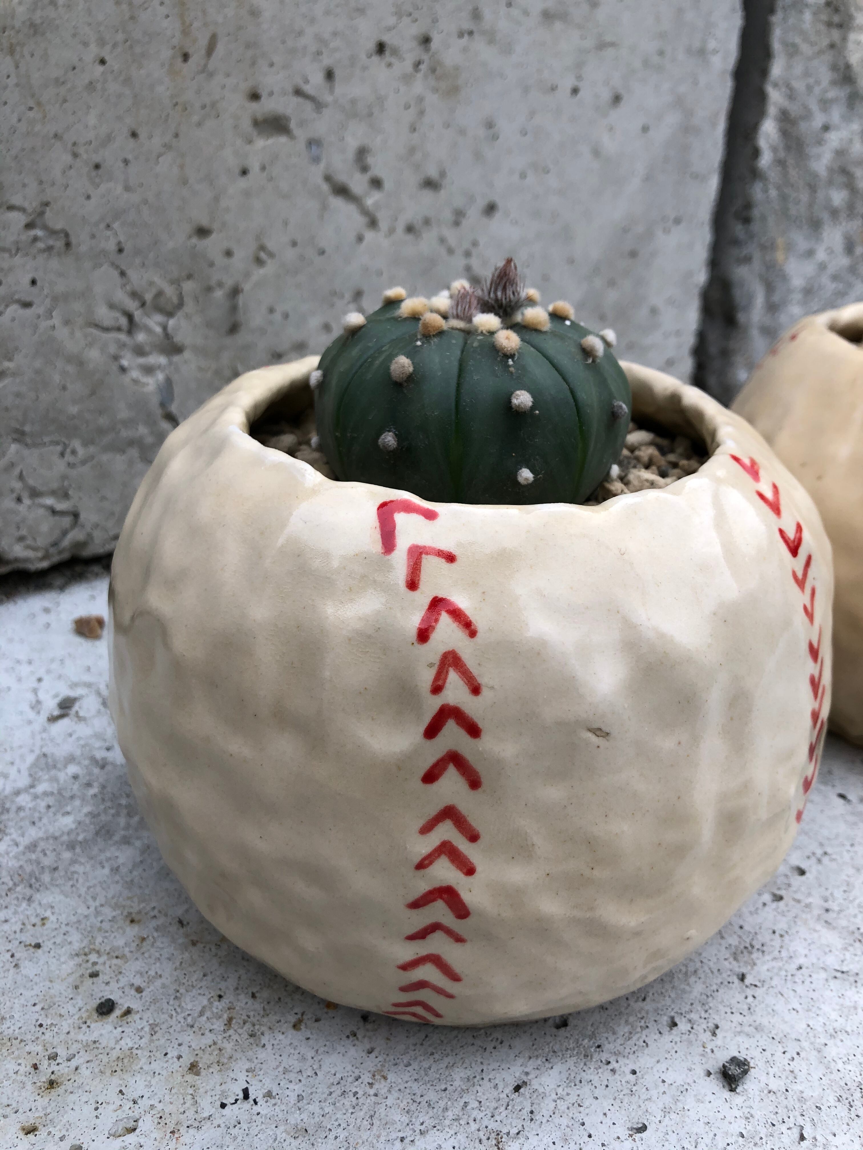元野球少年は垂涎必至のボール鉢に、サボテン界の野球ボールを植え込みました。