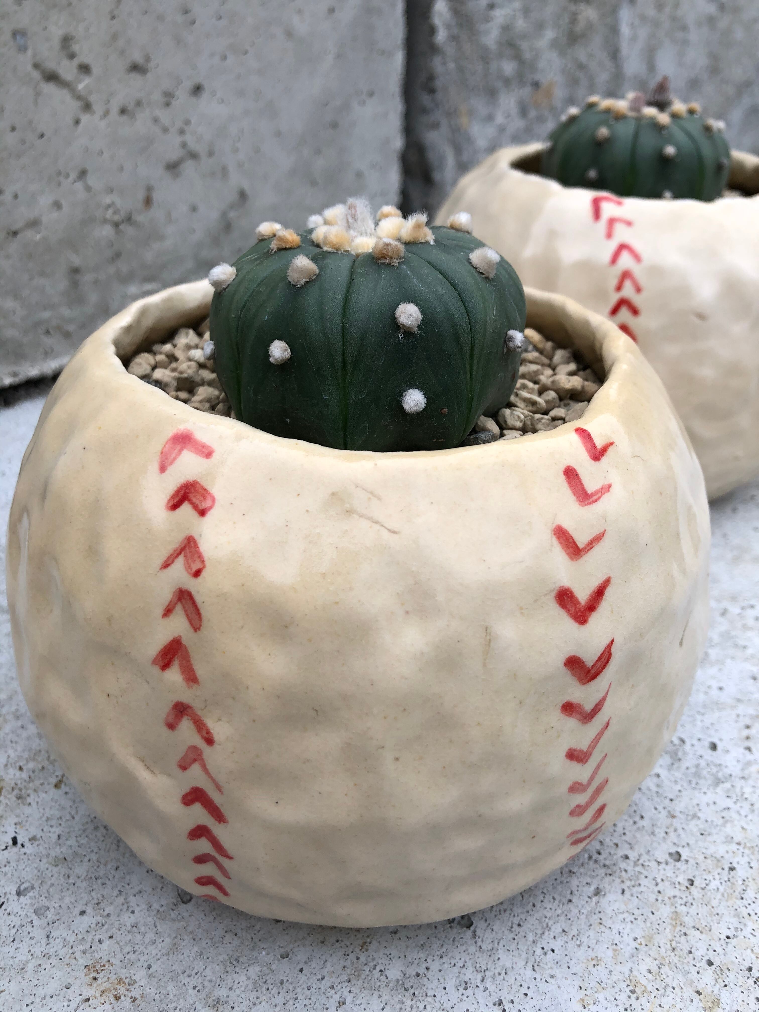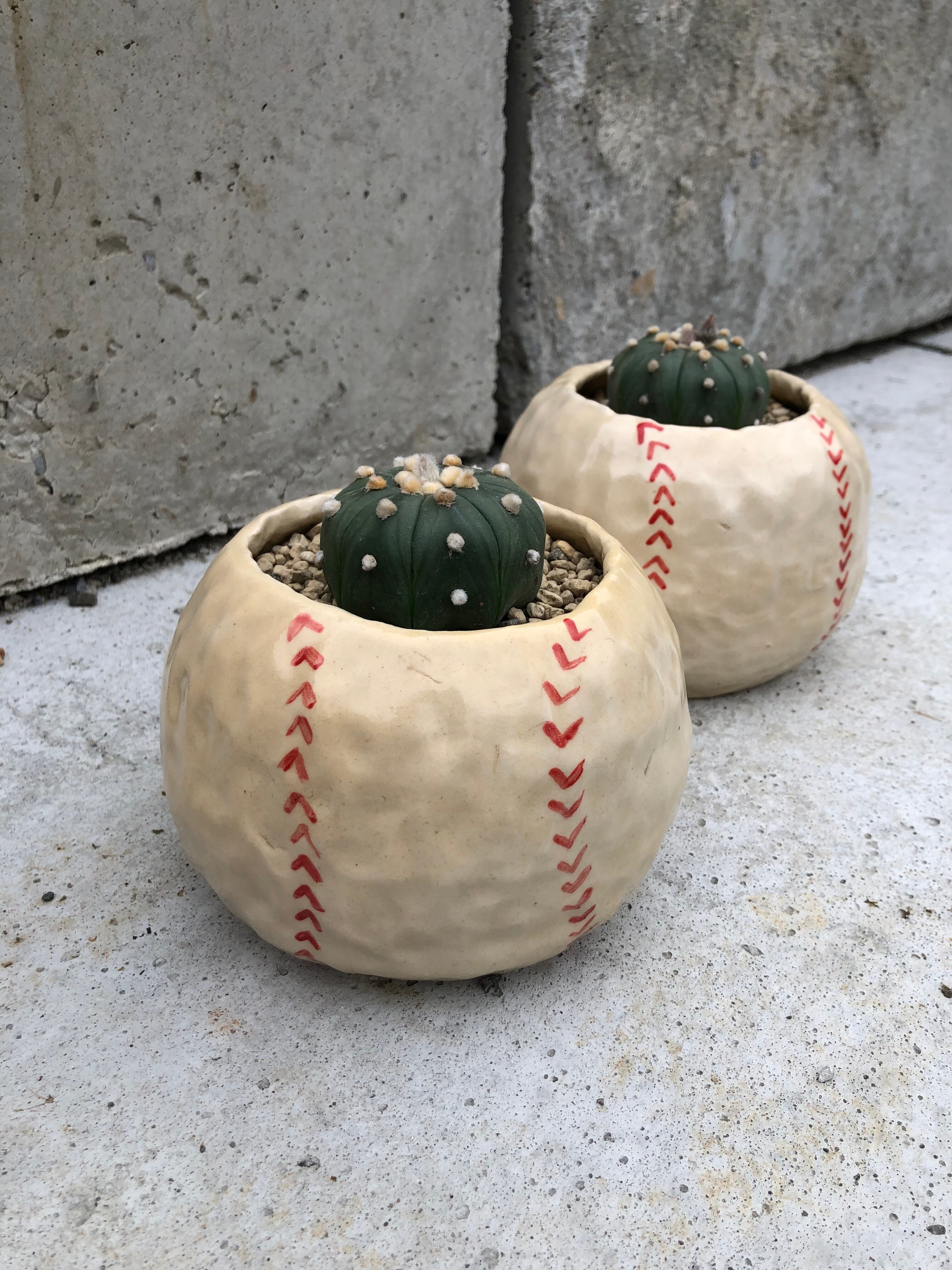 元野球少年は垂涎必至のボール鉢に、サボテン界の野球ボールを植え込みました。