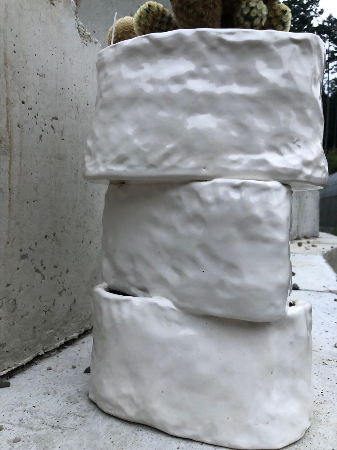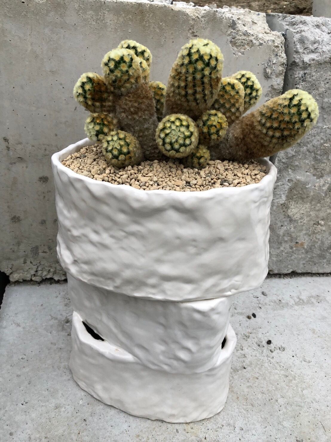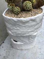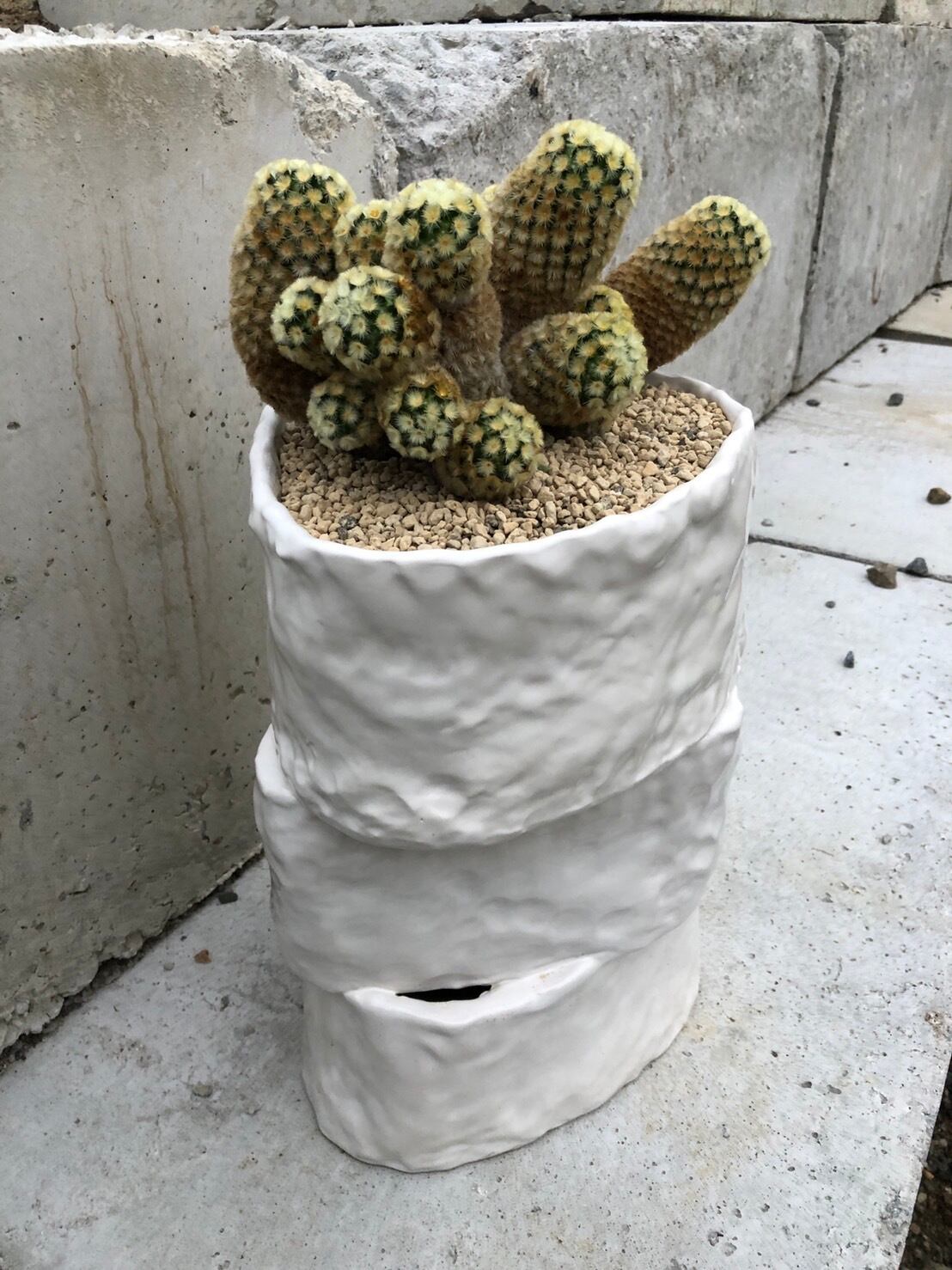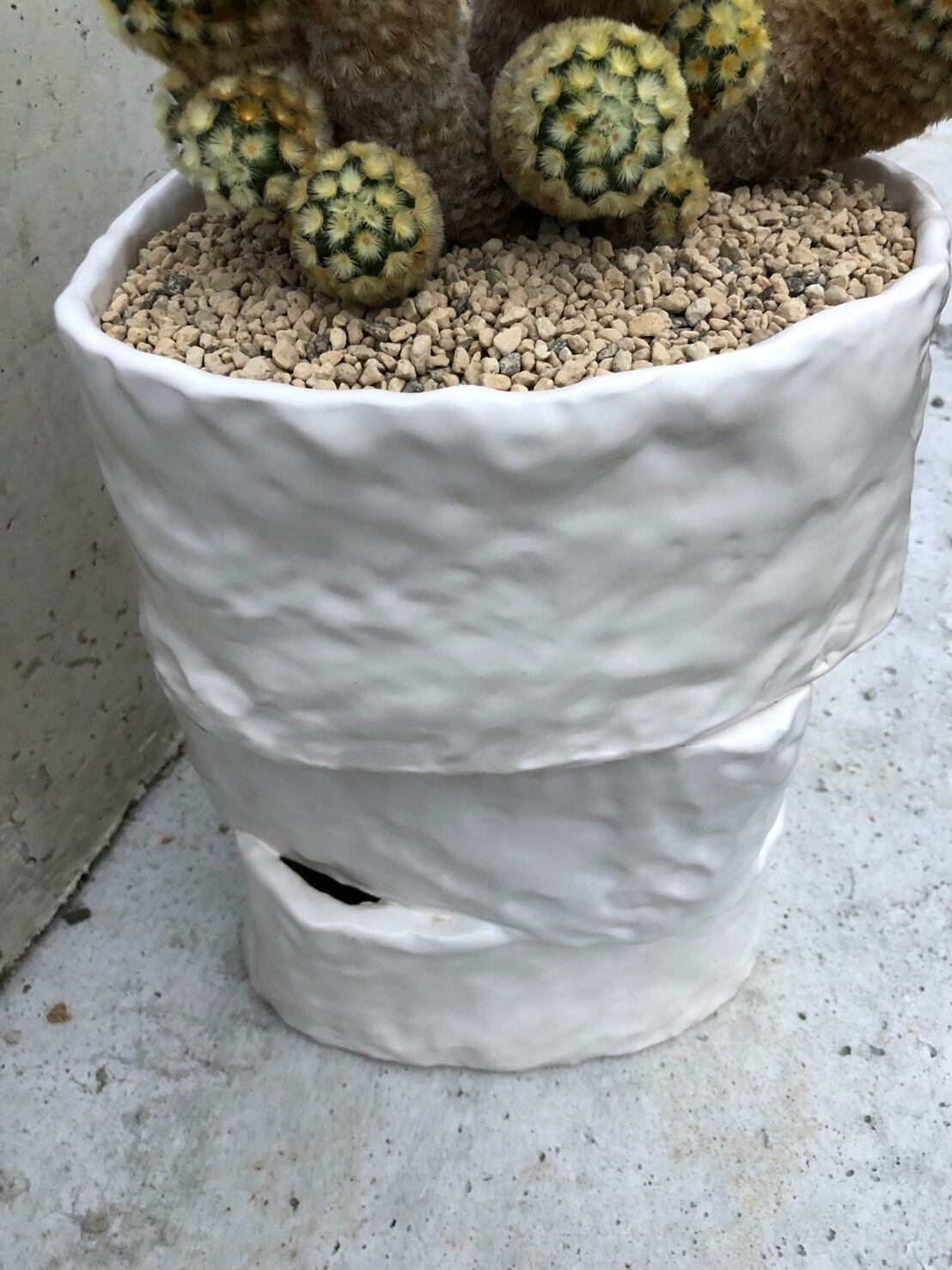 迫力のある大きさですが、白くて揺らいだ輪郭がやっぱり優しい鉢。群生したカルメナエも、花が咲いていなくても咲いているような雰囲気で優しいです。もちろんお花も可愛らしいです。